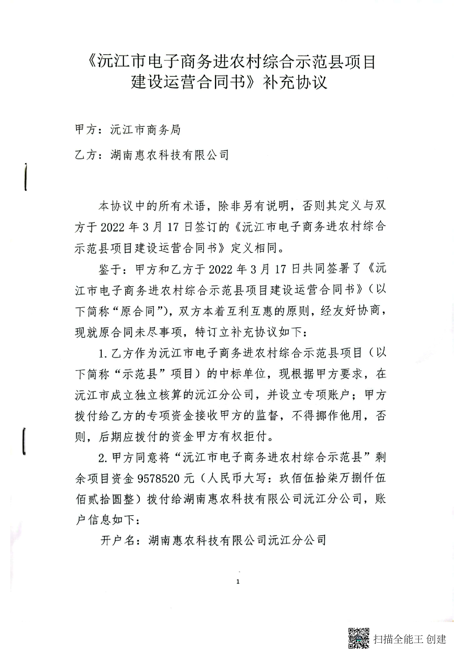《沅江市電子商務(wù)進農(nóng)村綜合示范縣項目建設(shè)運營合同書》補充協(xié)議