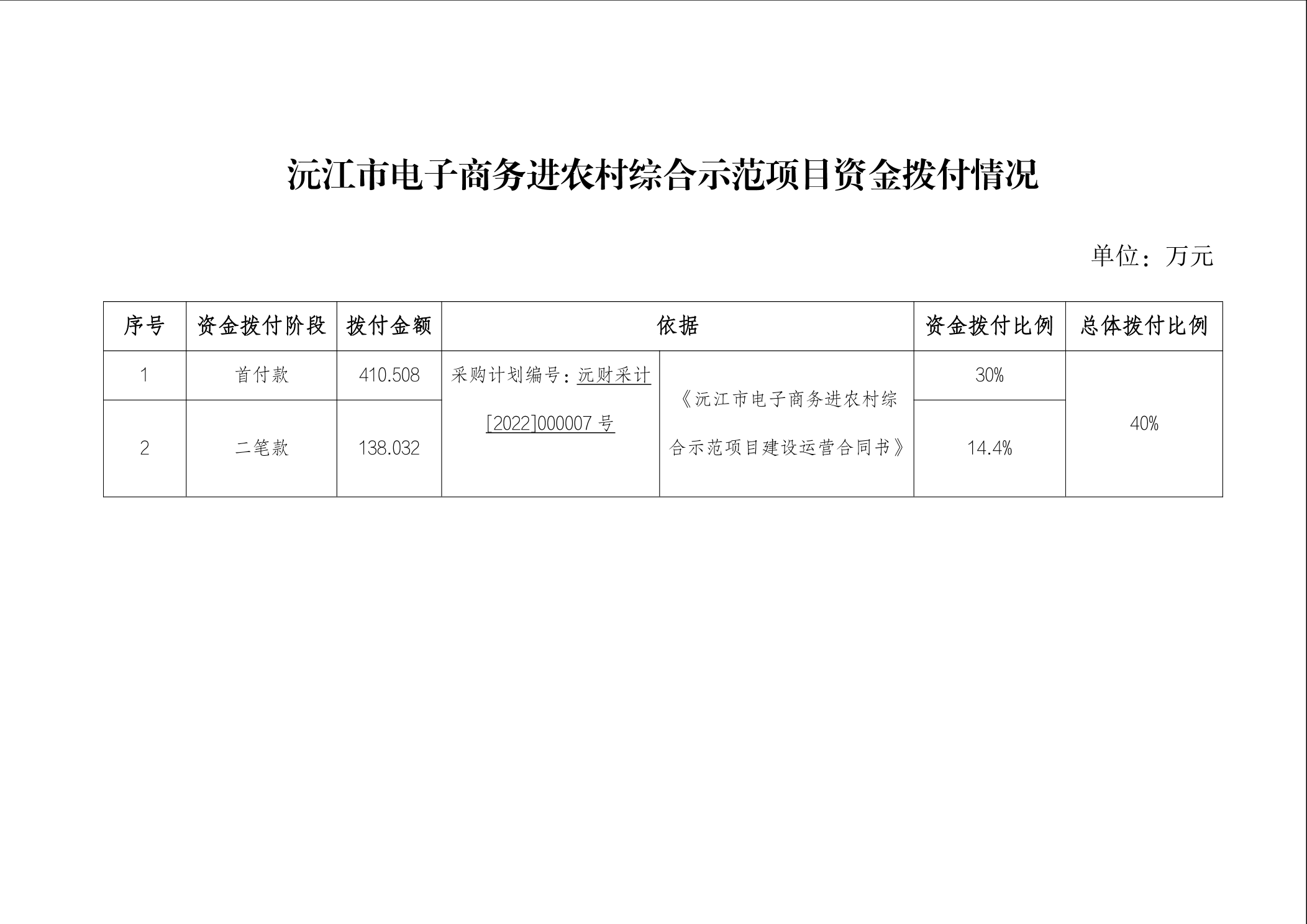 沅江市電子商務(wù)進(jìn)農(nóng)村綜合示范項(xiàng)目資金撥付情況