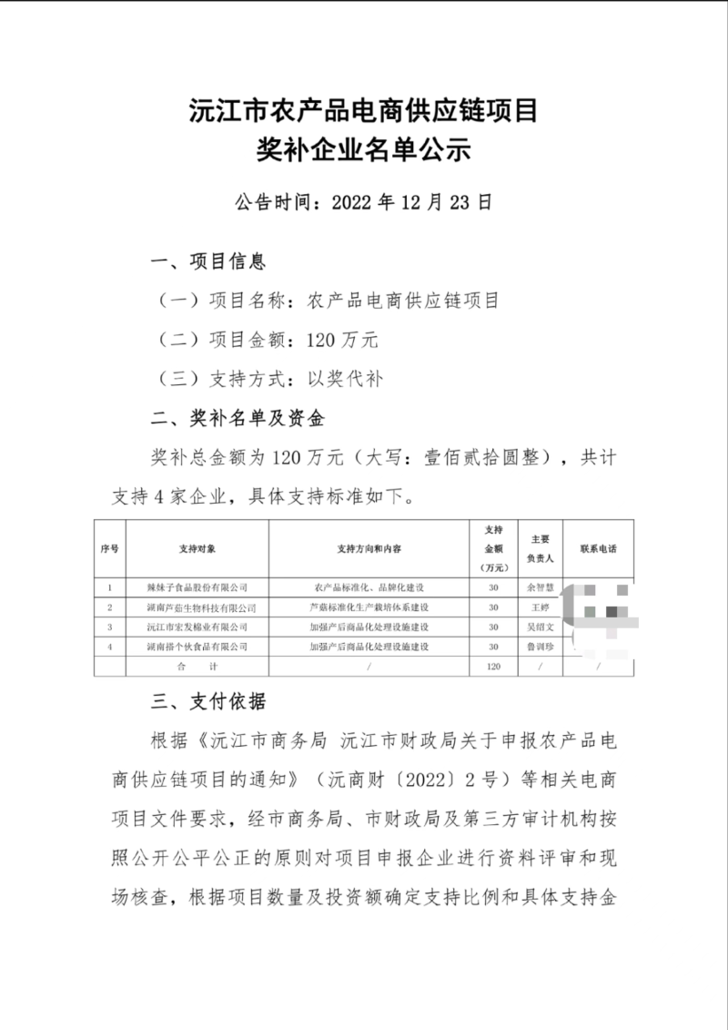 沅江市農產品電商供應鏈項目獎補企業名單公示