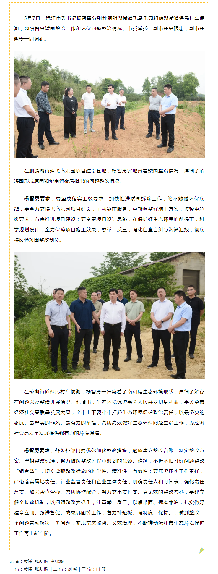 楊智勇調研督導突出生態(tài)環(huán)境問題整改工作