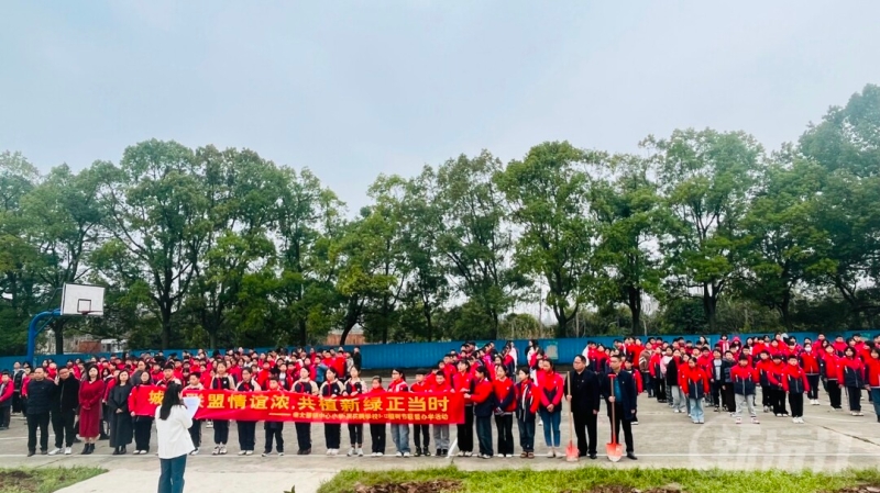 3月11日,在第47個植樹節(jié)來臨之際,沅江市蓮花塘學校與聯(lián)盟校南大膳鎮(zhèn)中心小學攜手開展了一場別開生面的“城鄉(xiāng)聯(lián)盟情意濃 共植新綠正當時”主題植樹活動。兩校行政班子及學生代表齊聚南大膳鎮(zhèn)中心小學,共同種下象征友誼和希望的樹苗,為春日校園增添新綠,也為城鄉(xiāng)教育聯(lián)盟注入新活力。