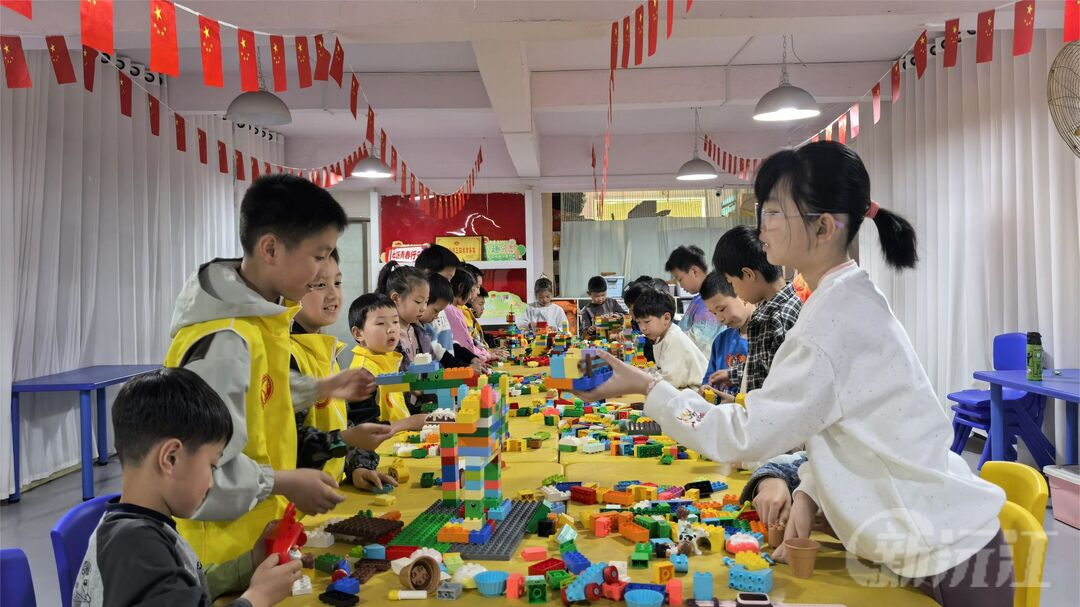 在實踐環節,五彩斑斕的樂高顆粒瞬間點燃孩子們的創作熱情,他們迫不及待投入動手制作。孩子們5人一組協同創作,有的小組組裝出了靈活的“狗形機器人”,有的則設計出了威風凜凜的“戰斗機器人”。其中,一位同學興奮展示得意之作,稱他的機器人裝備了感應“眼睛”,遇障礙物可自動轉向避開。活動中,志愿者老師穿梭其中,耐心指導、熱情鼓勵孩子們大膽創新。這片充滿活力與創意的實踐天地,成了微縮版“機器人研發基地”,每個孩子都是小小發明家,每個作品都閃耀智慧光芒。