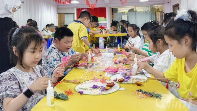 下午,“執扇寄情”活動同樣溫情滿溢。60余名“小小國風匠人”以永生花為媒、團扇為紙,在專業志愿者的指導下完成選材、構圖、粘貼等工序,將春日繁花與感恩之心凝練成永不凋謝的禮物。當媽媽們接過孩子親手制作的團扇時,一位母親輕撫扇面哽咽道:“這都是孩子的心意,這份愛比言語更深刻。”
