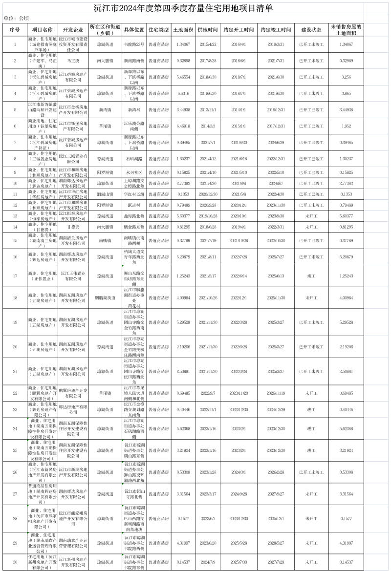 沅江市2024年度第四季度存量住宅用地項(xiàng)目清單